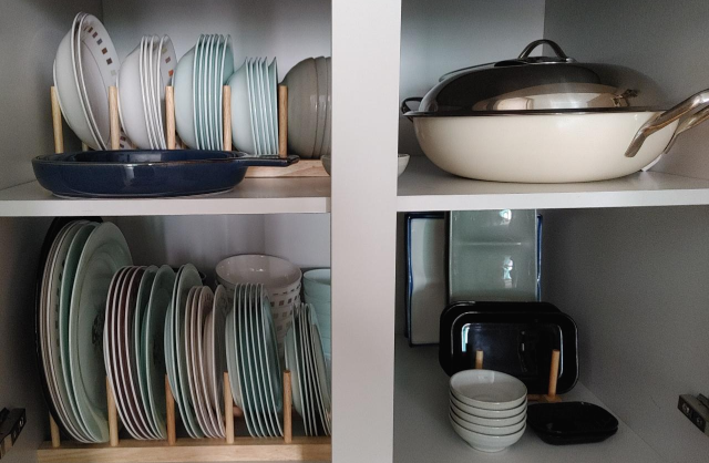 포개져 있는 접시들을 꺼내 쓰기가 불편하다는 생각이 들었다.