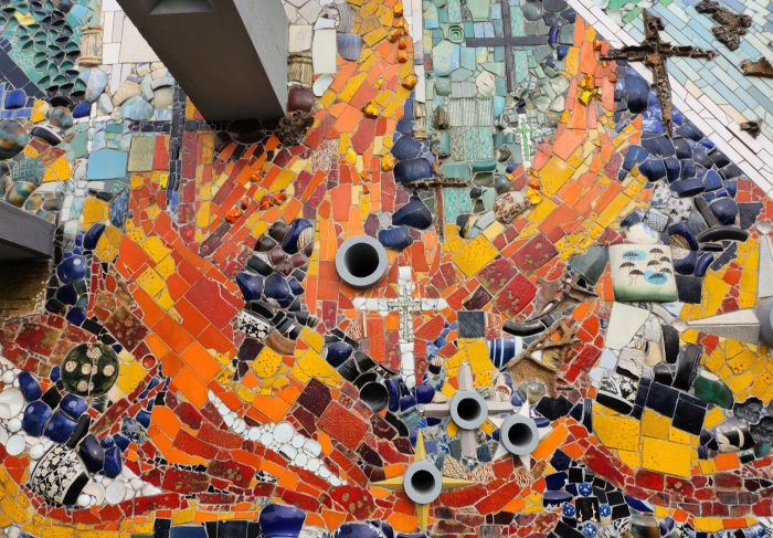 도자기 조각들로 마감한 탑을 세웠으며, 제대에는 26개의 십자가가 조각돼 있다.