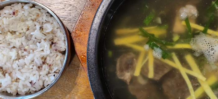 잡곡밥과 뚝배기에 보글보글 갈비탕이 놓이고......
