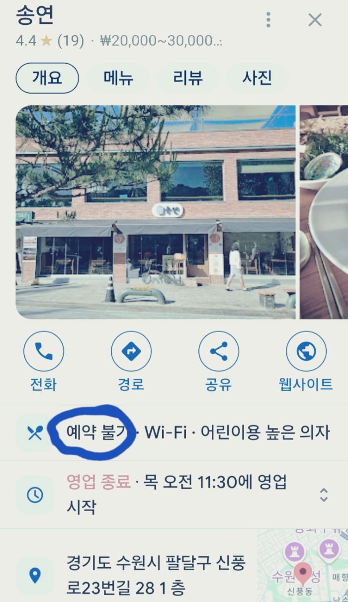 여러명일 때 예약 가능하고, 며칠 통신쪽 고장으로 전화가 안됐다는 송연 측 설명을 들었네.