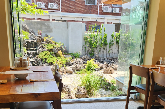 들어와 보니 밥집 안쪽으로 예쁜 중정이 잘 가꿔진 나름 이쁜 밥집,