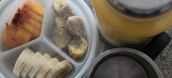 혹시 드실까 싶어 삶은 밤을 준비했더니 나름 복숭아와 밤 한 조각은 드시네.